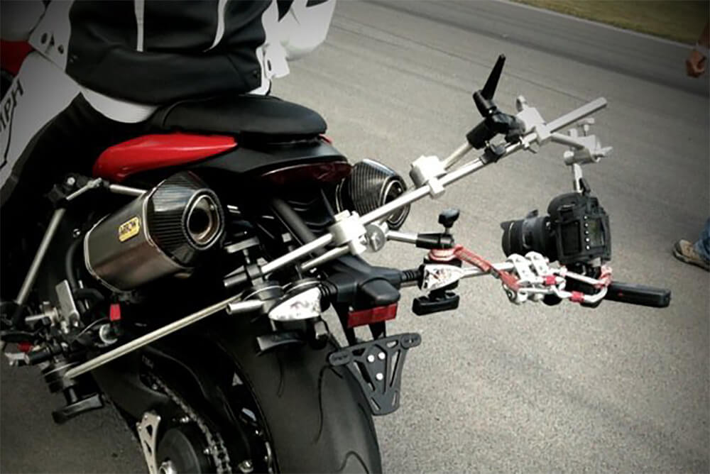 Built from limpet mounts and steel rods with a levelling head to mount the camera. It’s versatile and great to rig outside a car as much as inside!