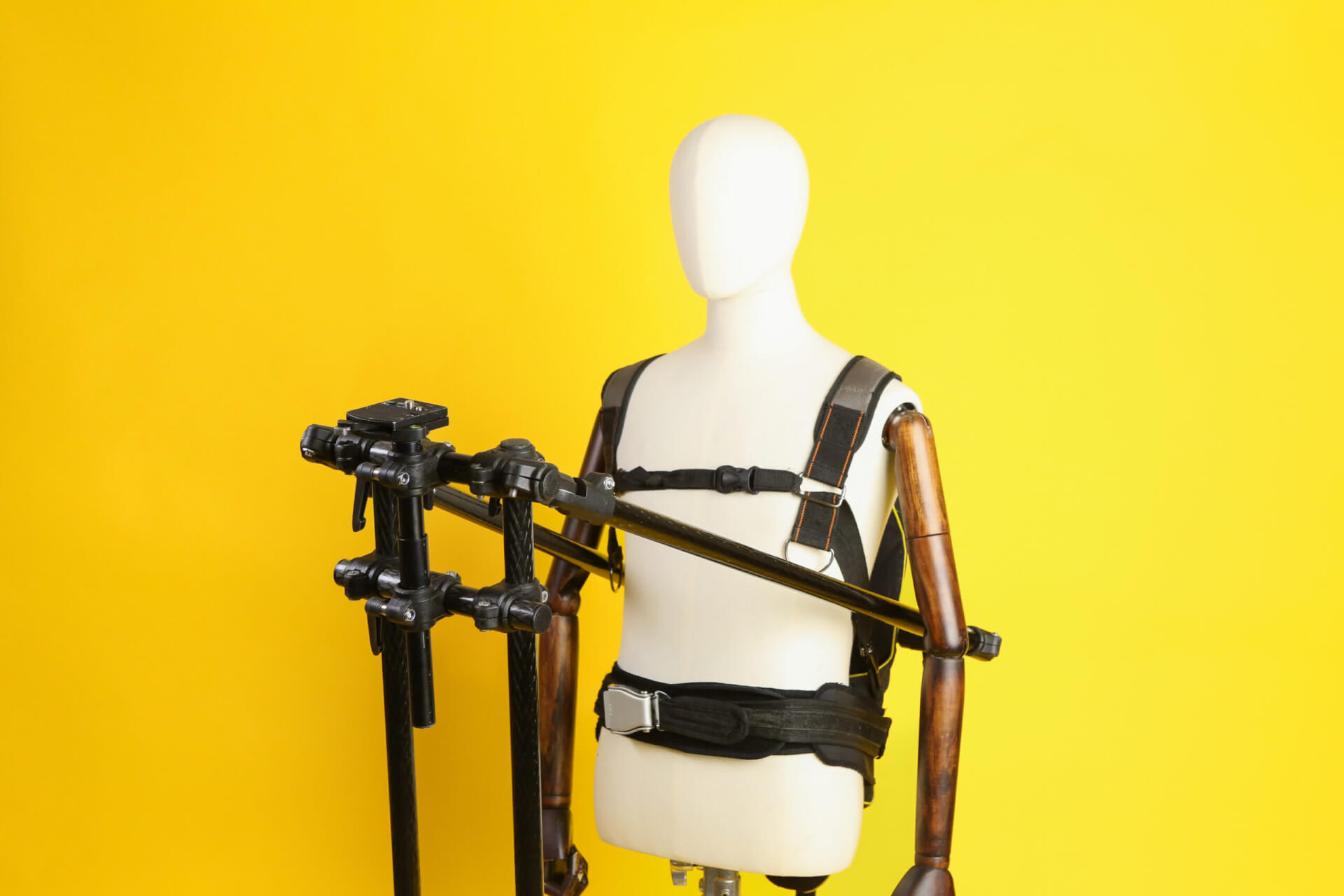 The Feral Big Body Rig can take a payload of up to 6.5kg so you can safely stick a cinema camera on there and not have to worry. Utilising a strong back brace (those used in Moto MX), cleverly made into a fully supportive back/chest rig with connectors and a lightweight carbon pole tripod which extends out in front of you, the camera is mounted on a ball-head in and can be angled anyway you desire. Getting that perfect walk through-the-crowd shot has never been so easy!
